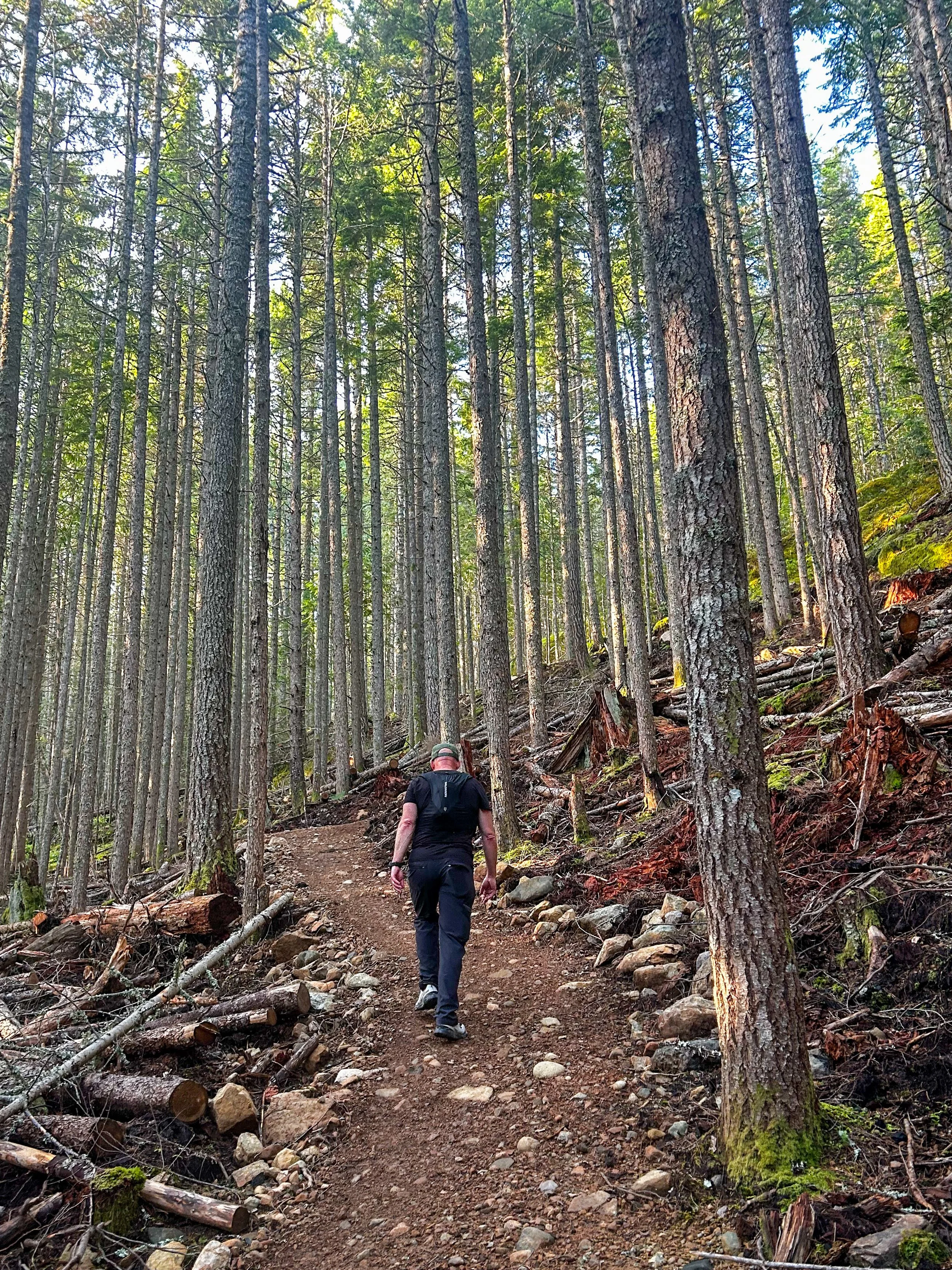 We had the trail to ourselves, and only saw one couple who had camped at Deer Lake, and another person coming up as we were going down. So, four hours of pure wilderness. We had hoped to get up a little higher, to Lunch Lake, but we had to turn around at around 5 miles in because of snow.