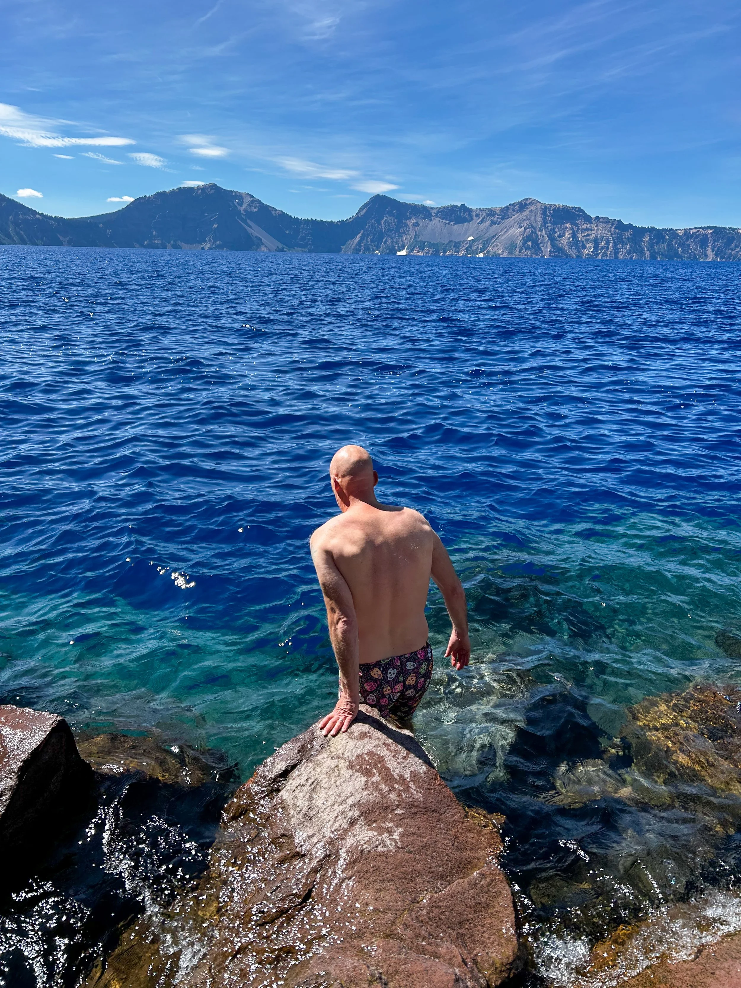 We also stopped at Crater Lake, which brought us to 8 National Parks on this trip. I biked most of the way around (the road was closed for construction), and then we hiked down to the water for a quick dip. While we were getting in the water, someone jumped from the cliffs above, maybe 15 feet. When they landed in the water, they broke their wrist. So we helped them out of the water, and donated our towel as a sling.